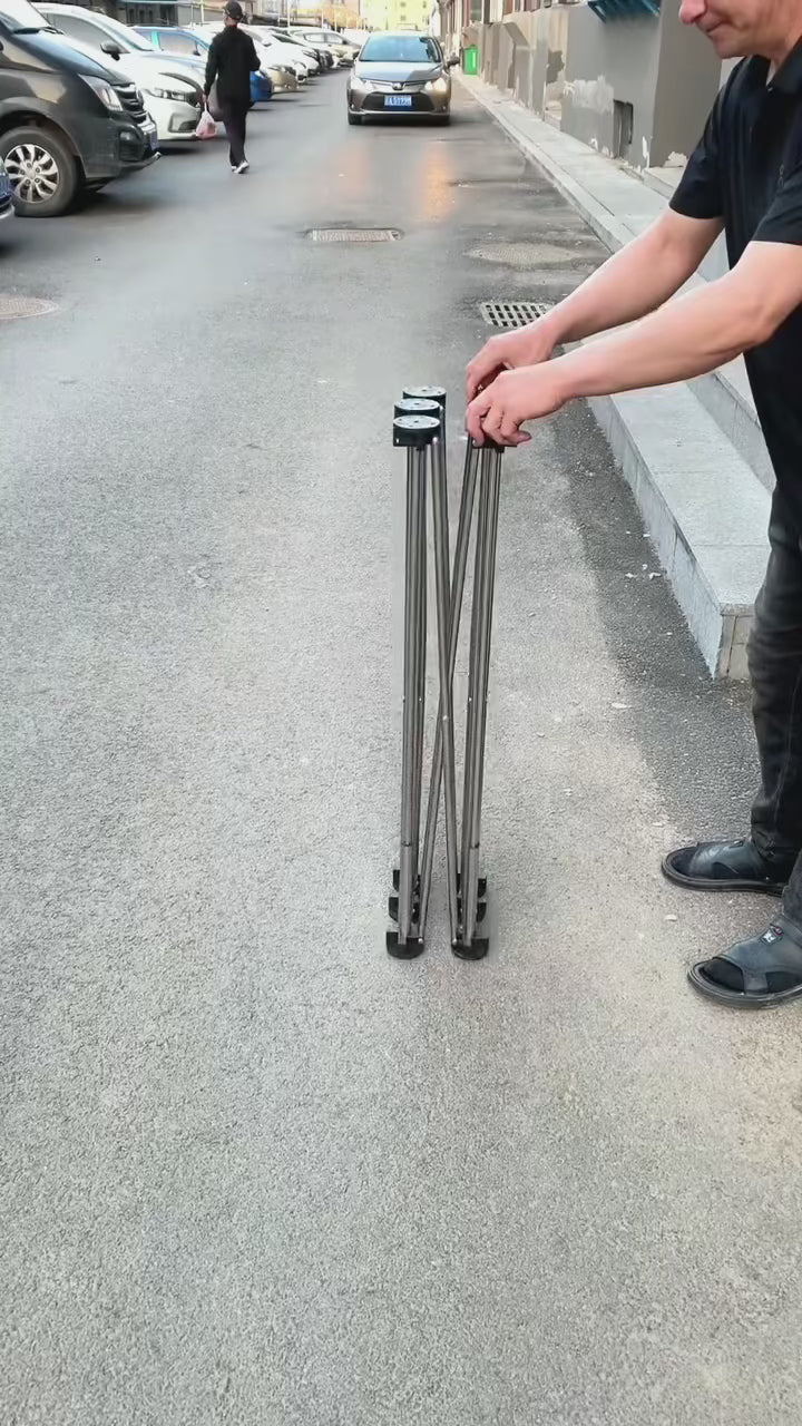3) Lightweight and compact steel frames set up instantly to support 300kg of materials.