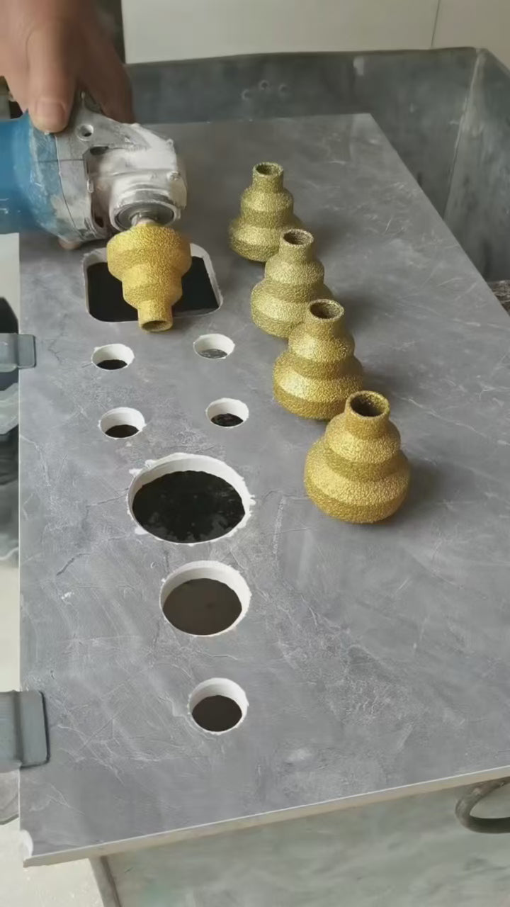 3) Suitable for drilling, enlarge and edging processingon concrete, ceramic tile, marble, granite, quartzmicrocrystalline stone, etc.